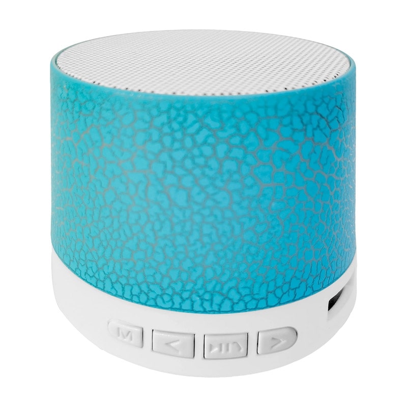 Mali Bluetooth MP3 zvučnik ima kompaktan dizajn od lagane tvrde plastike. Zvučnik ima mini šarene LED diode za osvetljavanje, jačina zvučnika je 3W. Pruža dubok i bogat zvuk sa snažnim basom. Zvučnik ima integrisanu bateriju od 520 mAh koja može trajati od 3 do 5 sati, zavisno o upotrebi i količini punjenja. Podržava praktične i pametne funkcije poput FM radija, handsfree poziva, podrške za Micro SD kartice i USB fleš memorije. Dolazi sa dugmićima za podešavanje jačine zvuka.