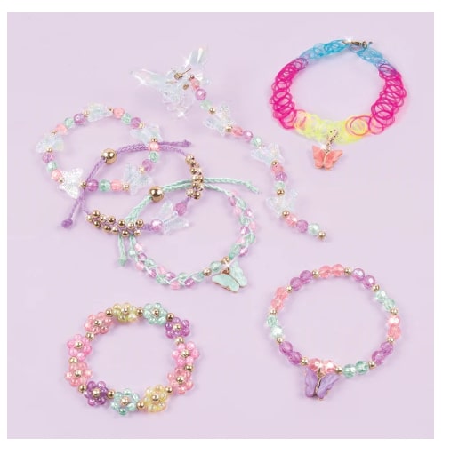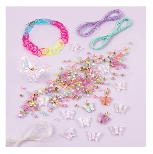 Osećajte se super leteći sa ovim kompletom nakita od leptira! Ovaj „uradi sam“ komplet nakita sa leptirima nudi zabavnu i kreativnu aktivnost za tinejdžere! Izaberite iz asortimana divnih perli i privesaka da biste napravili 5 narukvica i 1 modernu elastičnu ogrlicu i kopču za kosu sa perlama. Prelepa leptirska kopča za kosu upotpuniće izgled sa dodirom lepršavog stila! Savršen za svaku priliku, ovaj komplet nakita nudi nagrađujuću aktivnost za tinejdžere da uživaju sa voljenim osobama ili sami. Dolazi sa PlaiTrai-om za organizovanje perli, sidrenih narukvica i pametnih telefona za pristup digitalnim uputstvima. Karakteristike proizvoda 1 prozirna elastična vrpca 4 m (4,4 id) 1 najlonski kabl 2 m (2,2 id) 1 najlonski kabl 2 m (2,2 id) 271 razne perle 1 kopča za kosu u obliku leptira 1 elastična ogrlica sa kopčom od jastoga 3 čari 1 instrukcijski list 1 PlaiTrai